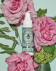 Lifestyle shot of Santa Maria Novella Acqua di Rose Gel Cream (50 ml) with pink roses and leaves in the background