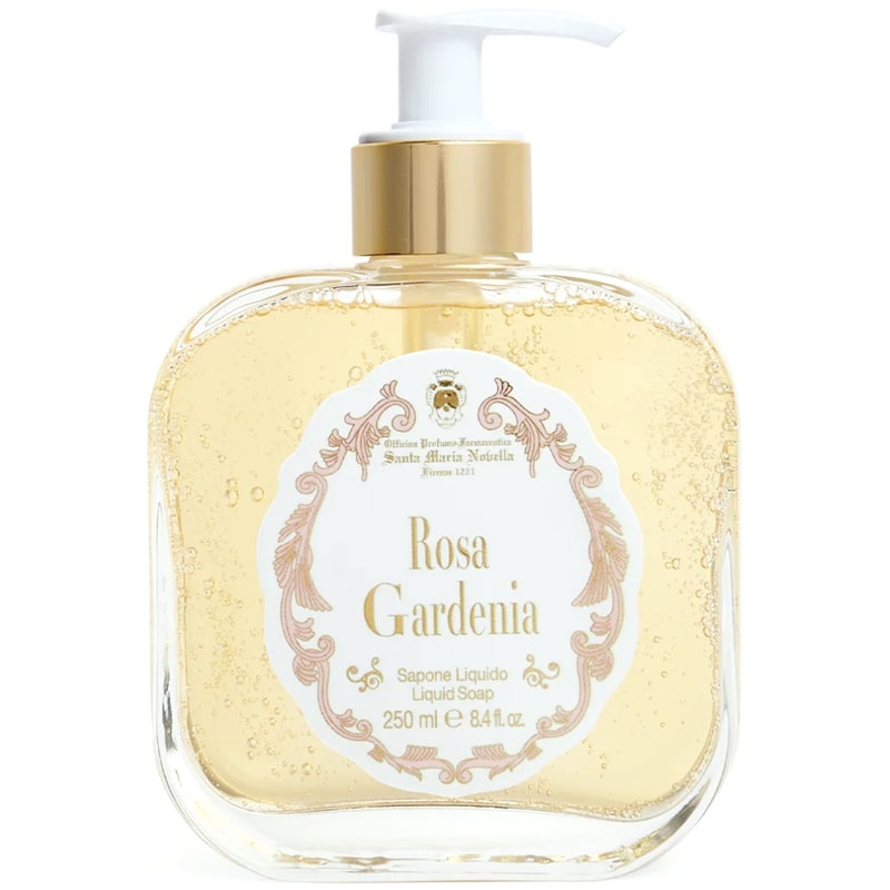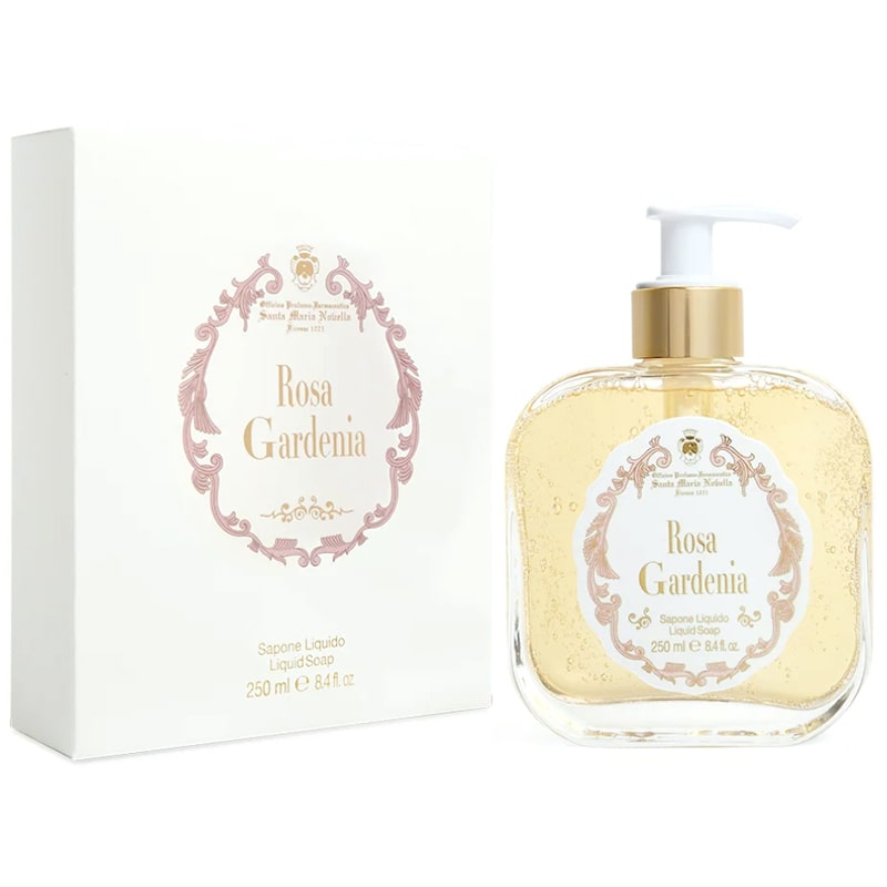 Rosa Gardenia: the new charming wonder of Santa Maria Novella. The liquid soap is formulated with surfactants of vegetable origin and enriched with natural saponins. The formula is completed with calendula extract, chosen for its softening properties.