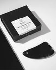 Snow Fox Skincare Black Obsidian Hot Stone Gua Sha - product shown next to packaging on table
