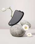 Snow Fox Skincare Black Obsidian Hot Stone Gua Sha - product shown on rocks with flowers
