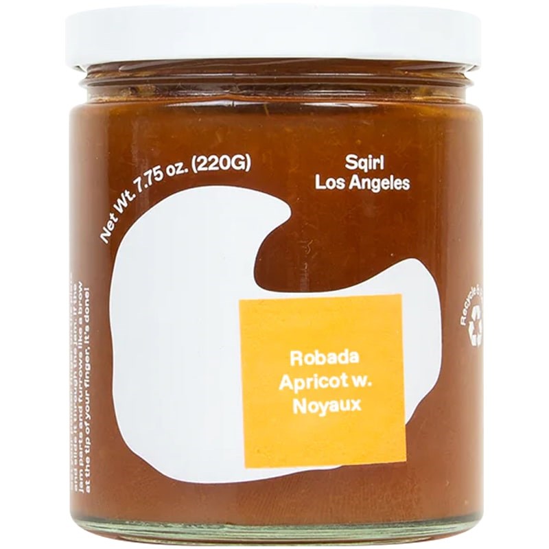 Silky aromatic Robada apricots married with their noyaux, the hand-cracked apricot kernel 'almonds' which are first toasted and then steeped into the preserve as it cooks. Bright apricot flavor with an amaretto finish. A jam for apricot lovers.