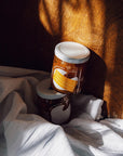Made with love by combining certified organic yuzu from Rancho del Sol with Rincon Tropics passionfruit. Enjoy the yuzu fruit in all of its forms (finely cut rinds, membrane, its pectin and juice-they gave so much of themselves!) and the sweet, gooey innards of the passionfruit to make a jam that is perfectly tart and floral.