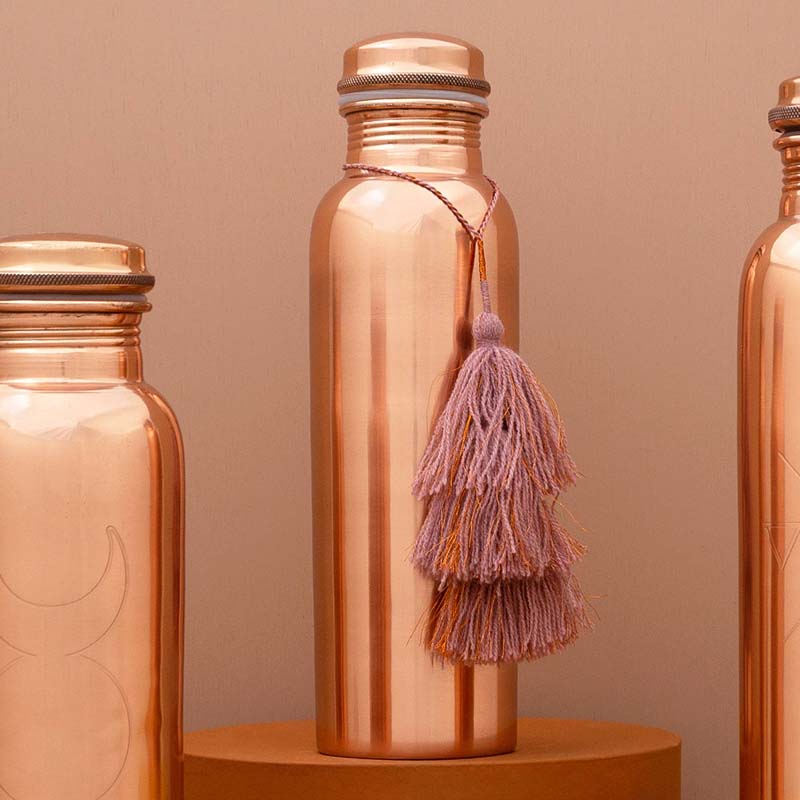Hmmm...if drinking from a copper vessel is the first thing you do to nourish the body, how can it also nourish the spirit? As a daily reminder to set a positive intention. Tamra Copper bottles are hand engraved with carefully chosen words or symbols to imbue the water contained with specific positive energies.