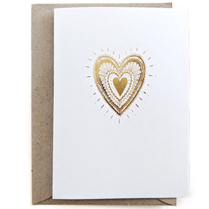 A heart made of gold and hand drawn details. For an additional effect, the design is embossed creating a beautiful, tactile feel, raising the design out from the card.