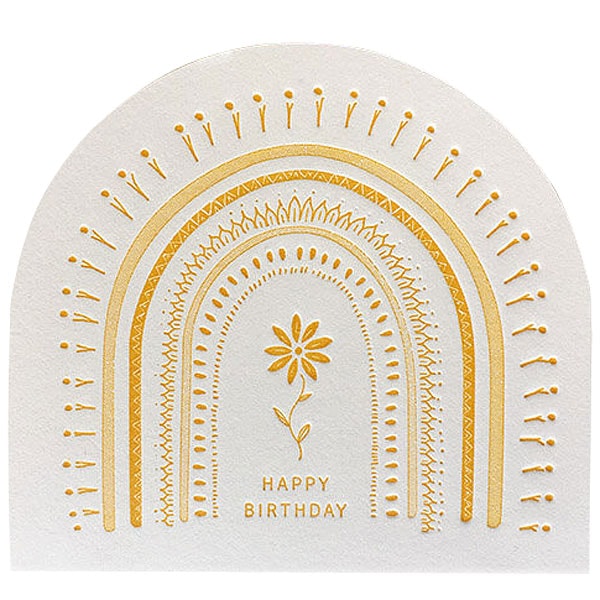 “Happy Birthday” among tiny details and a rainbow-like arch.
