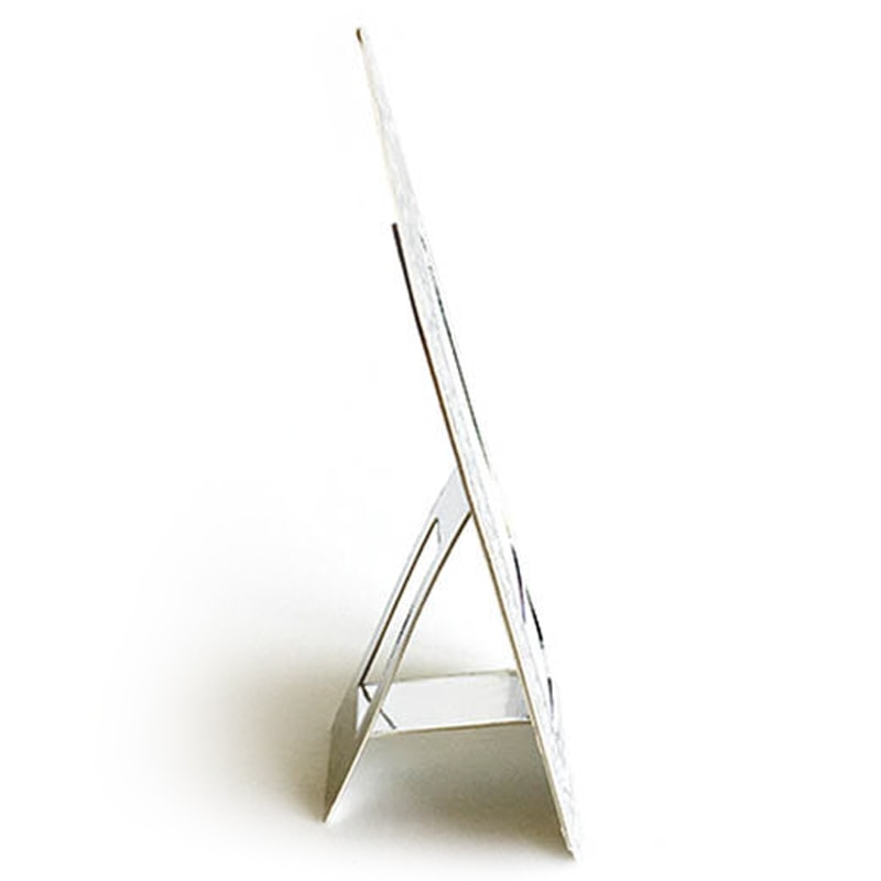 The Little Press Tall Faux Tin Frame - Silver - shown from side after folded to stand