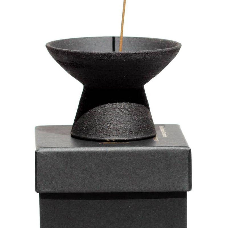 Ume Incense Shibui Raw Black Stoneware Incense Holder side view on box with stick incense (not included)