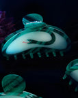 A friendly snake to coil around your tresses and keep them in place. This chic claw looks like it could be carved from Jade and Malachite and can hold lots of hair! This is a larger claw style, and works best for medium to long hair.