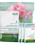 YUNI Rose Cucumber Wipes are made with skin loving ingredients. They are plant-based, vegan, cruelty-free, gluten-free and free of parabens, formaldehyde, petrolatum, sodium lauryl/laureth sulfates, mineral oil, synthetic colors or fragrances, GMOs, PABA, EDTA, or PEGs. Tested on lucky humans (never on animals), the organic, natural ingredients are consciously and sustainably sourced, while the formulas feature natural aromas. Crafted in a solar powered facility.